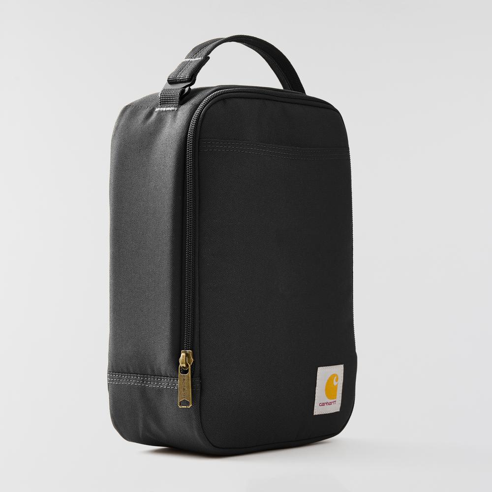 This Carhartt lunch cooler keeps food and beverages cold at the jobsite. The soft-sided cooler is made with Rain Defender water-repellent technology and has an easy-to-clean PEVA lining inside. A hook on the top handle attaches it to your backpack.