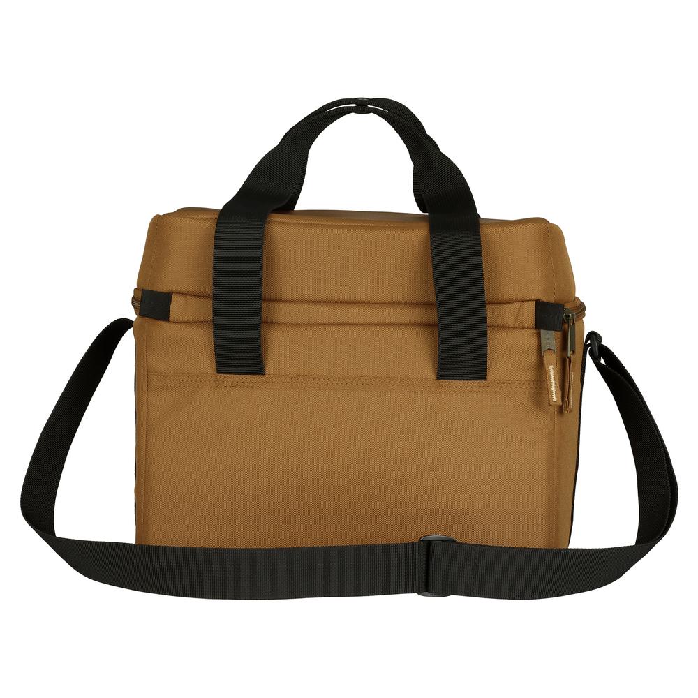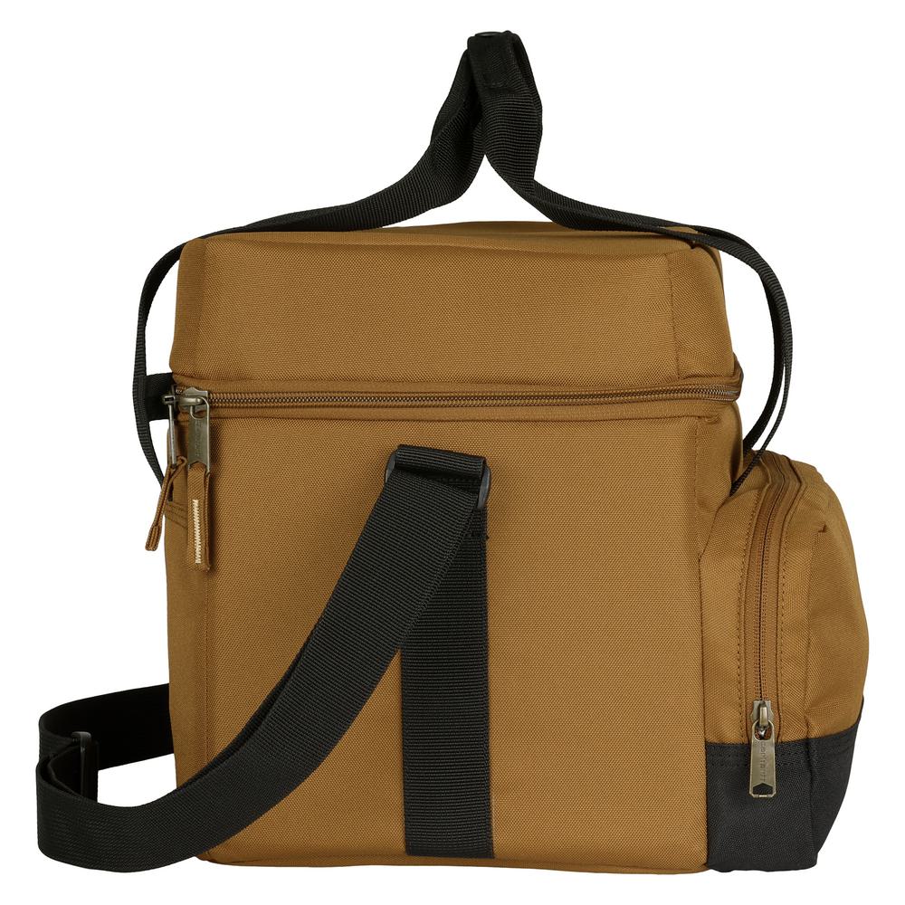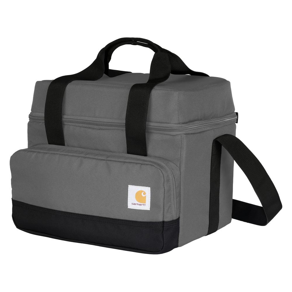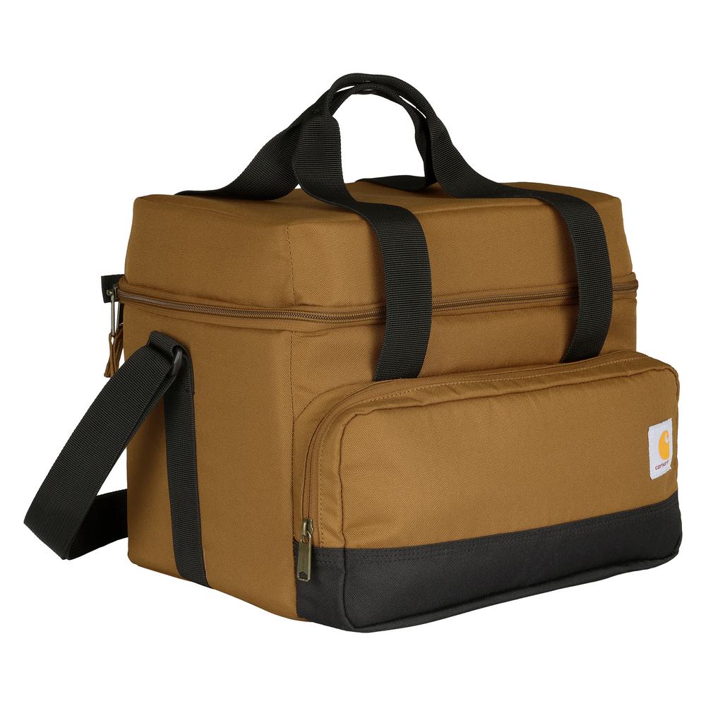 This Carhartt cooler keeps food and beverages cold for up to eight hours. It has room for 18 cans as well as ice. A top compartment allows you to store dry items separately. It's made with Rain Defender to shrug off light rain. A PEVA lining makes it easy to clean.